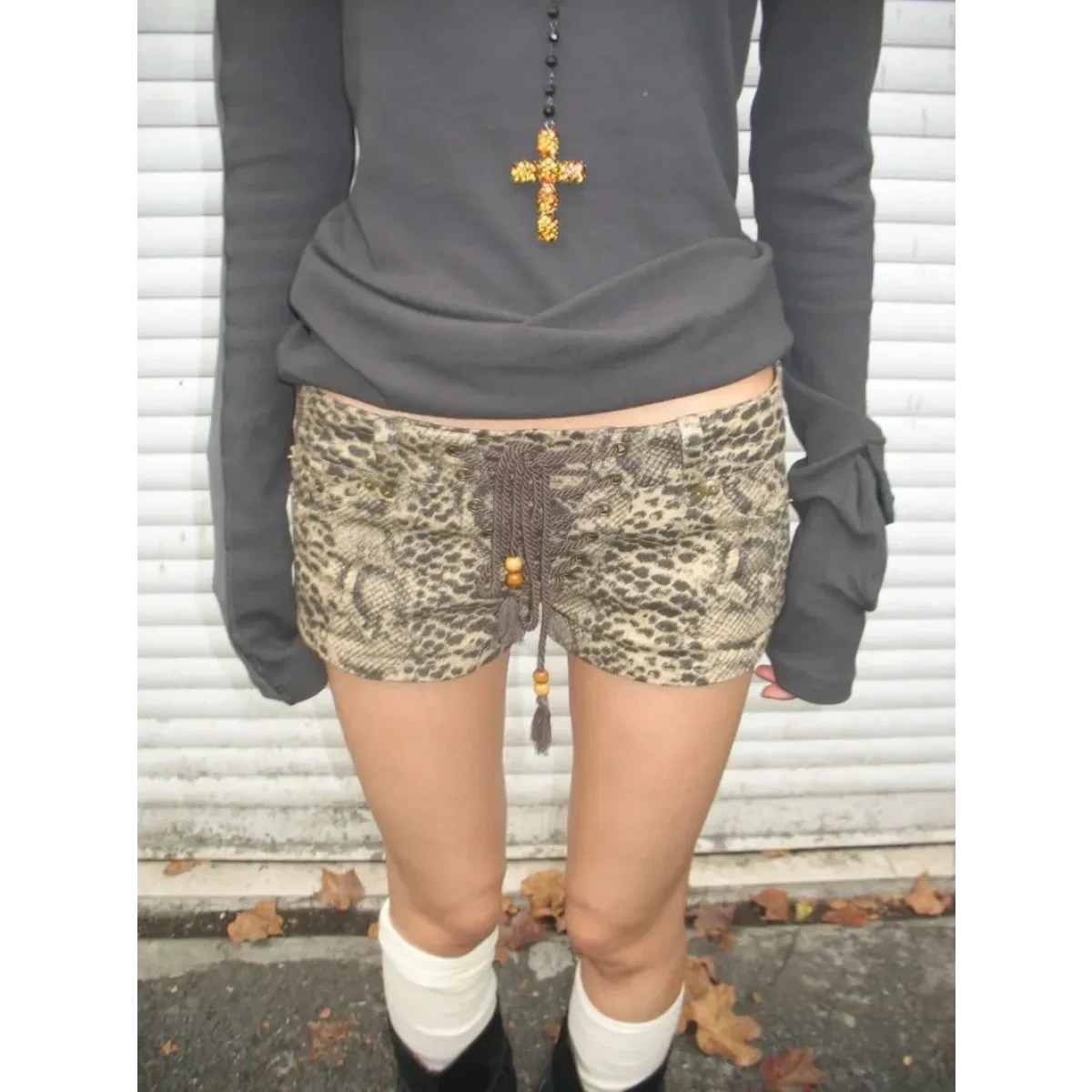 Time to turn heads and serve major throwback vibes with the Pattern Print Lace-Up Shorts – Y2K Low Waist E-Girl Vintage Style 🐆🔥 These bold beauties blend fierce leopard print with a lace-up detail that screams retro rebel. Whether you’re dancing at a summer fest or just vibing with your girl gang, these shorts bring that it-girl energy—effortless, edgy, and totally Y2K.
