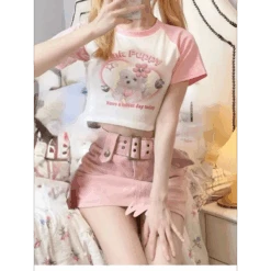 Prepare to be charmed by the adorable Pink Puppy Crop Top! This casual yet playful piece is your perfect companion for a sizzling summer season. Let’s dive into the delightful features: