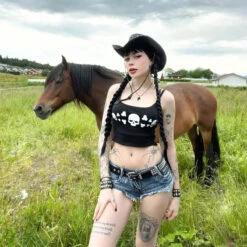 👚 Styling Tip: Pair the Rebel Bones Crop Cami with high-waisted denim shorts and chunky boots for an effortlessly cool look. Add some statement jewelry and a leather jacket to complete the edgy ensemble.