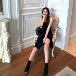 The low price casts some doubts. Do you save on the quality of the Vintage Velvet Black Dress with Spaghetti Straps and Slit?