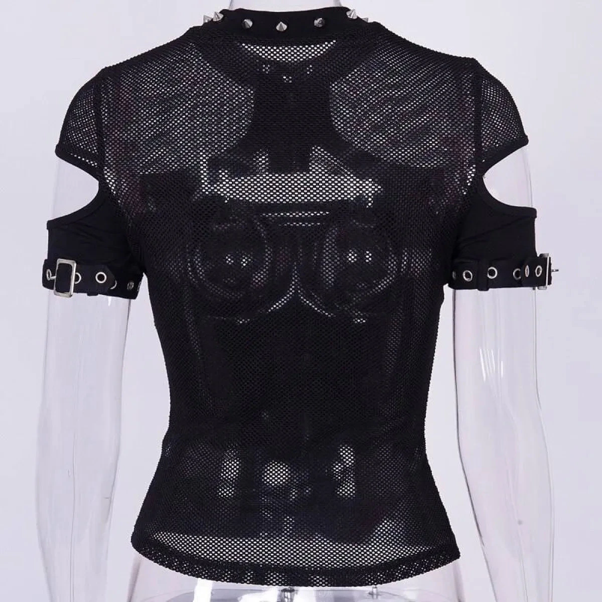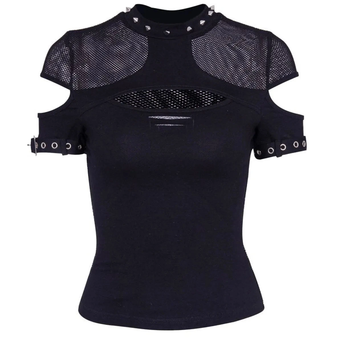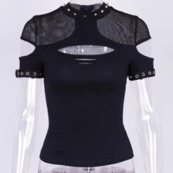 - Feature: Gothic, sexy, hollow out, black, t-shirts