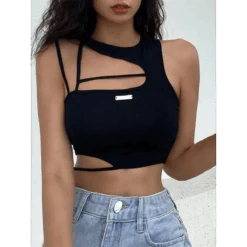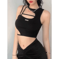 The low price casts some doubts. Do you save on the quality of the Women’s Hollow Out Black Tee: Sleeveless Skinny Top with a Cool Punk Twist?