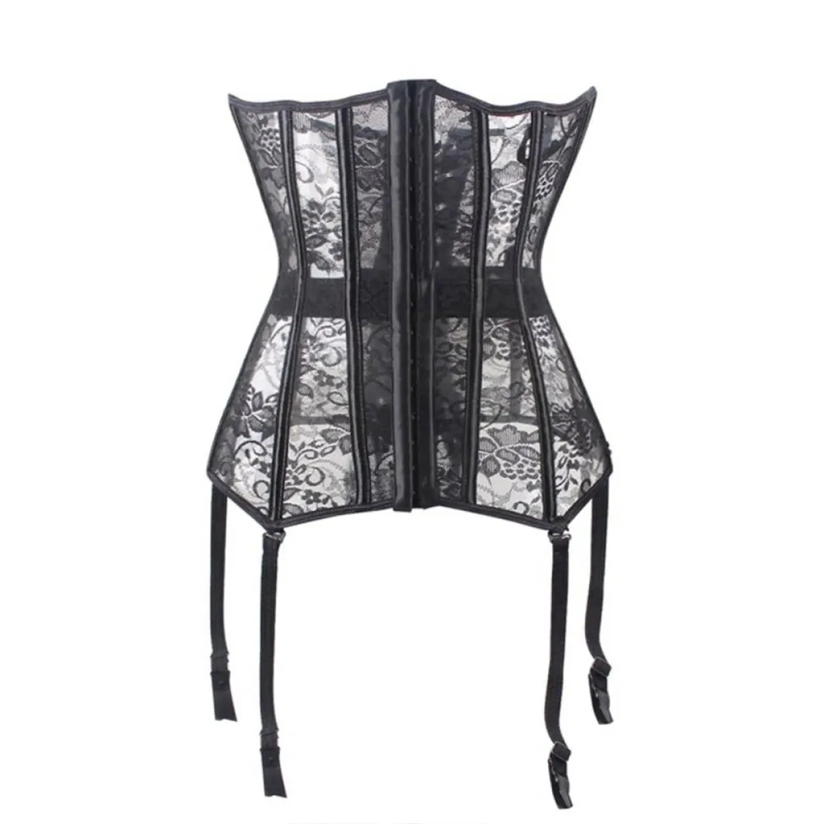 BUY SEXY SHEER CORSET BUSTIER WITH GARTERS TODAY AT THE LOWEST PRICE AROUND