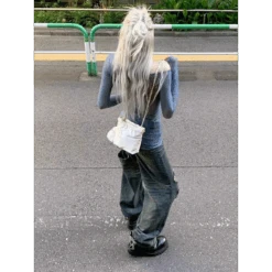 - Pastel Grunge: Layer it over a pastel bralette and pair with a pleated mini skirt, fishnet tights, and platform boots for a dreamy Harajuku-meets-Y2K look.