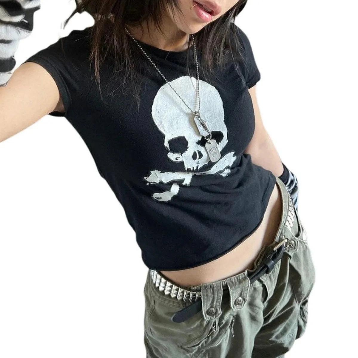We strive to accurately represent the colors of our products in the pictures on our website. However, please note that the actual colors of Summer Crop Tops for Women with Goth Clothes Skull and Cross Bones Print may vary slightly due to factors such as lighting and screen resolution.