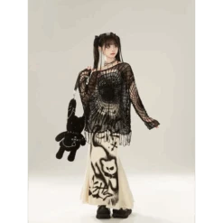 The Spider Web Knit Sweater – Y2K Off Shoulder Grunge Pullover is more than just a sweater—it’s a whole aesthetic. If your style is soft, spooky, or somewhere in between, this piece will elevate every look with that effortlessly haunted Harajuku flair. Don’t wait—these limited knits vanish faster than a ghost at sunrise 👻 Need help choosing your perfect fit or pairing it with the right pieces? Our style squad is ready to chat anytime!