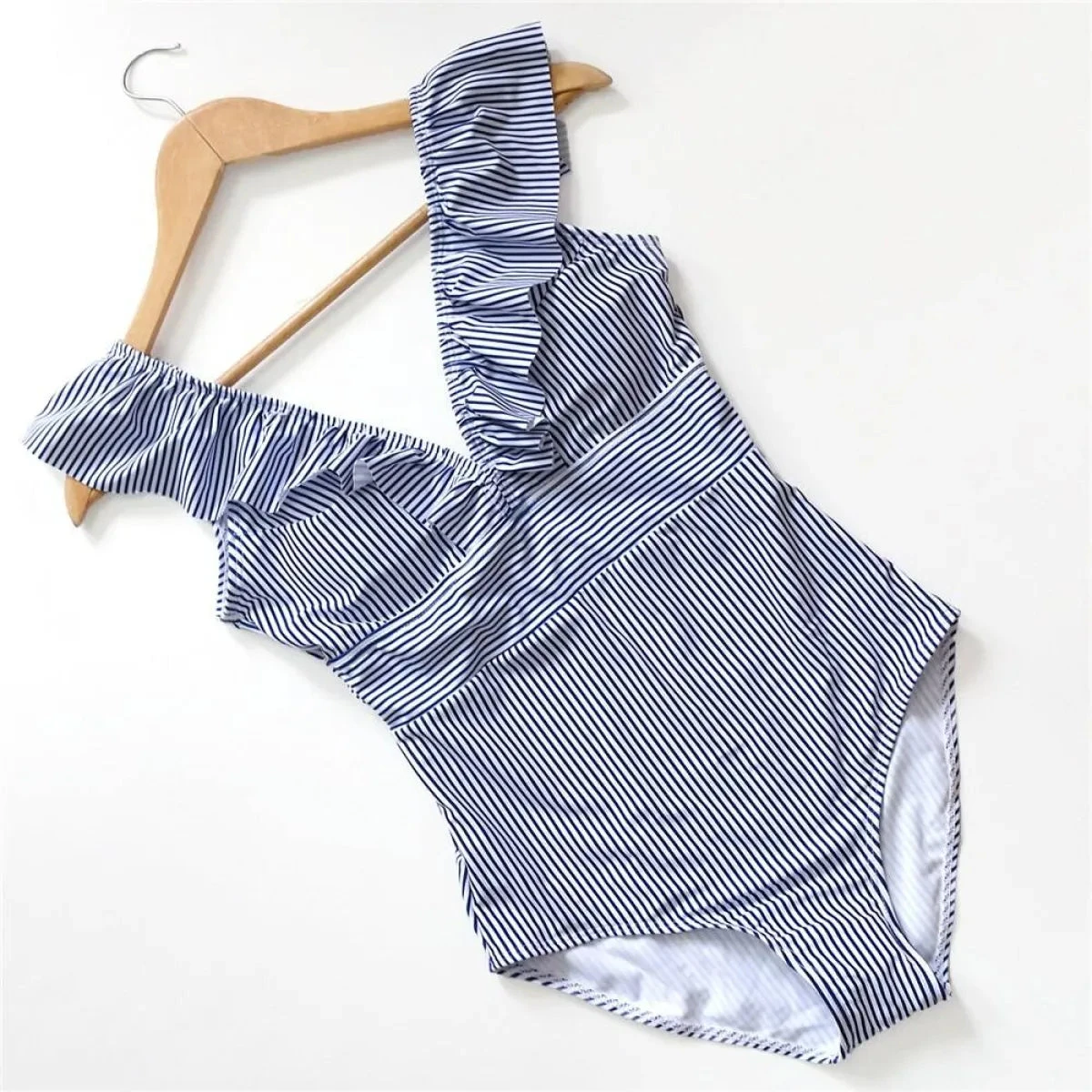 Interested in our Striped Ruffled Swimsuit? Well, great minds think alike, because our team is holding an exclusive 29% off on the Striped Ruffled Swimsuit today!