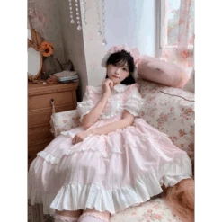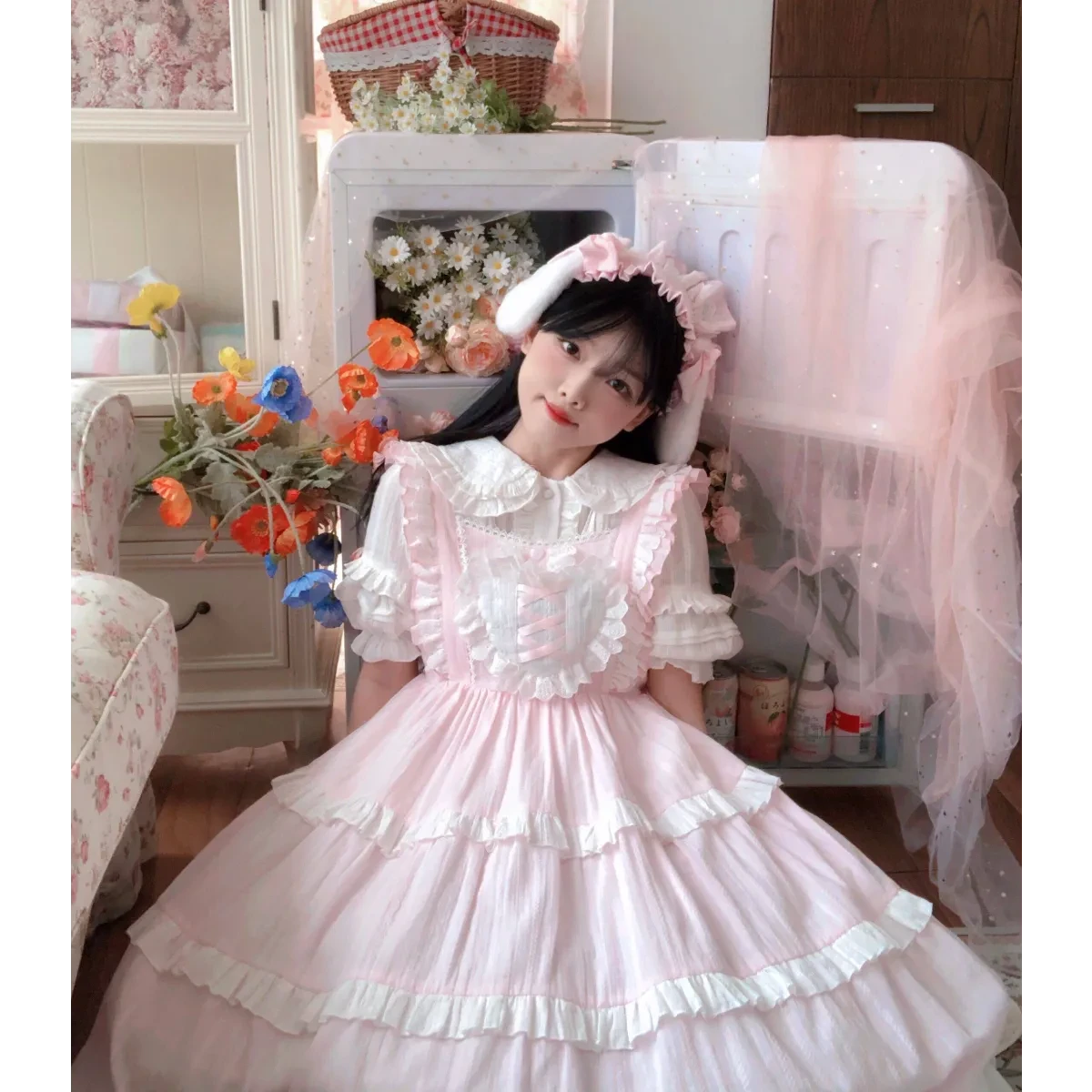 We strive to accurately represent the colors of our products in the pictures on our website. However, please note that the actual colors of Sweet Japanese Solid Color Sling Jsk Dress: Perfect for Any Kawaii Lolita Princess Occasion may vary slightly due to factors such as lighting and screen resolution.