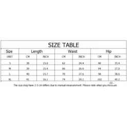 | Size | Length (cm/in) | Waist (cm/in) | Hip (cm/in) |