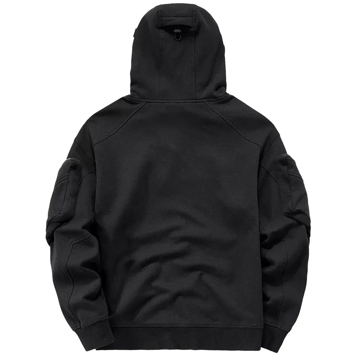 - High-neck urban hoodie with hooded collar for layered techwear appeal
