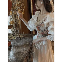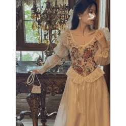 We strive to accurately represent the colors of our products in the pictures on our website. However, please note that the actual colors of French Vintage Print Floral O-neck Dress for Women may vary slightly due to factors such as lighting and screen resolution.