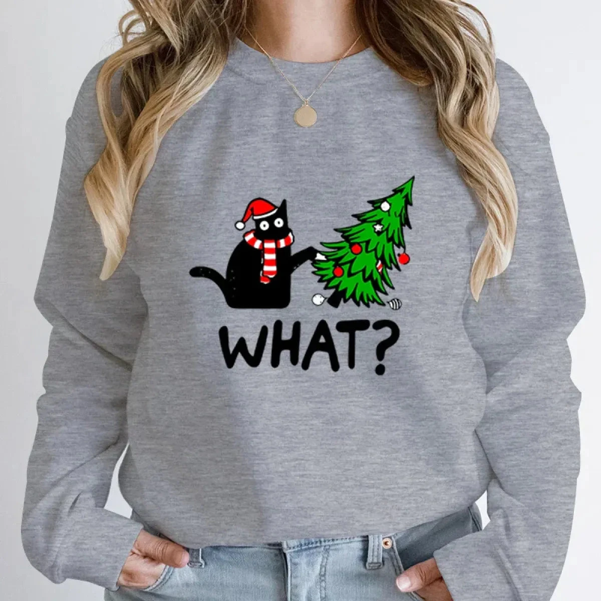 - Design: Adorable “What?” black cat print adds a quirky and humorous touch to your holiday wardrobe.