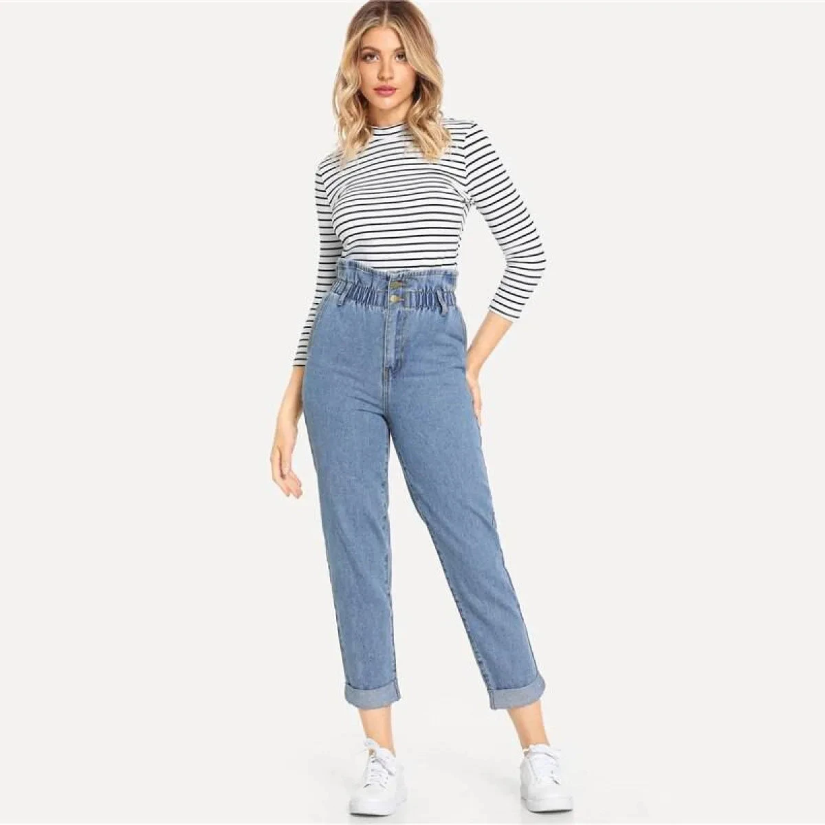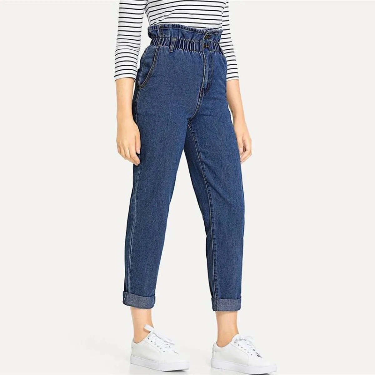 - 1 x Pair of Women’s High Waist Rolled Jeans, your go-to choice for a fashionable and comfortable look.