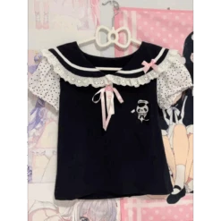 🌸 Introducing the Y2K Lace T-shirt: Kawaii Cartoon Embroidery Graphic Tee 🌸