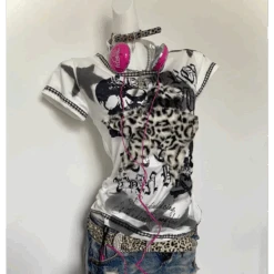Step into the grunge aesthetic with the Blue Dijiao Leopard Patchwork Tee, designed for those who love a mix of edgy, rebellious, and statement-making fashion. With its leopard print patchwork and relaxed silhouette, this tee is a must-have for Summer 2024, blending punk, streetwear, and Y2K energy all in one.